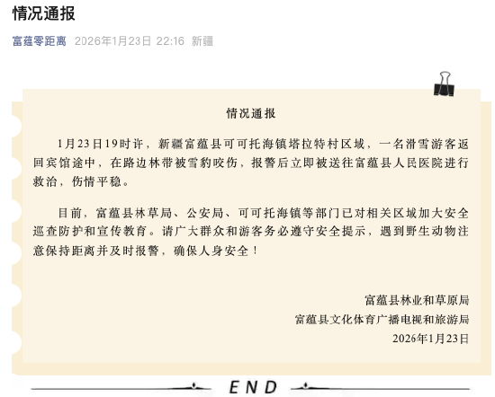 官方通报可可托海雪豹咬伤游客