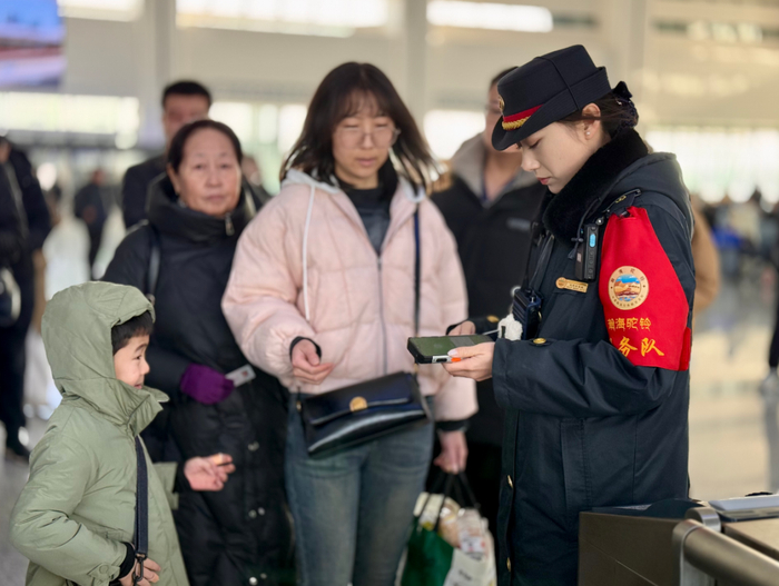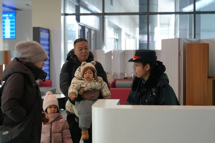 客运员正在引导服务重点旅客。