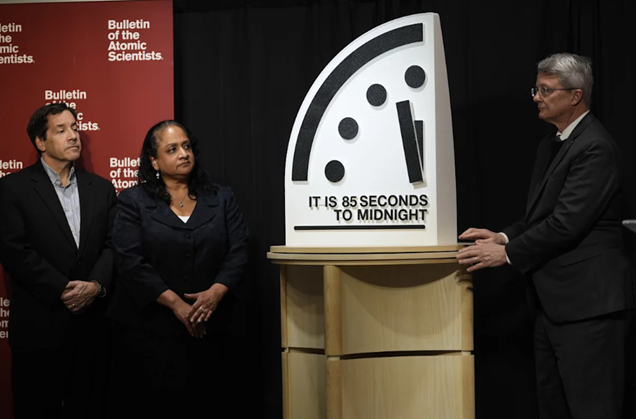 《原子科学家公报》科学与安全委员会主席、芝加哥大学物理学教授丹尼尔·霍尔茨在记者会上说:“我们现在向前迈进了4秒……这是有史以来最接近午夜的一次。传递的主要信息是我们应该感到担忧,但有很多事情可以做,从而可能将时钟拨回。”关于气候变化,霍尔茨提醒说,大气中的二氧化碳和全球海平面都已达到历史最高水平,“干旱、火灾、洪水和风暴持续加剧,变得越来越不稳定,这种情况只会越来越糟”。