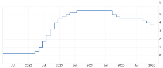 声明写道,为实现上述目标,FOMC决定将联邦基金利率目标区间维持在3.5%至3.75%不变。在考虑是否以及何时进行进一步调整时,委员会将审慎评估最新数据、经济前景的变化以及风险平衡状况。委员会坚定致力于支持充分就业,并推动通胀回到2%的目标水平。