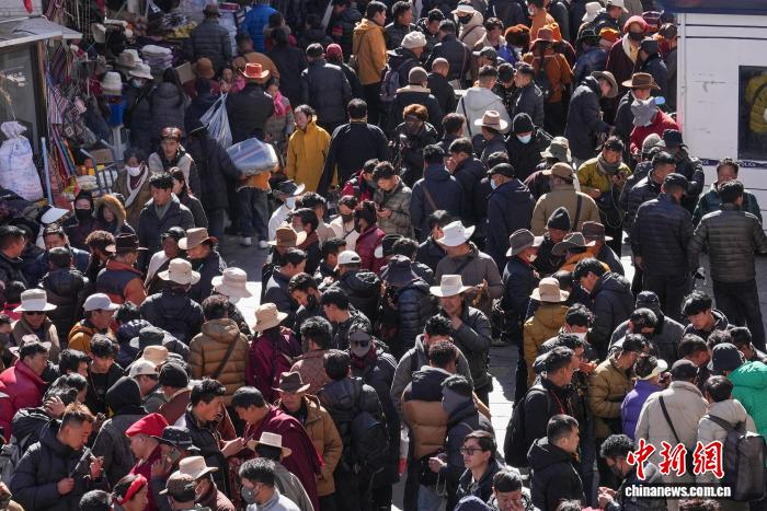 1月27日,藏历新年将至,拉萨街头年味渐浓。城区街巷灯笼高挂,市民忙着采购酥油花、香布、切玛盒、吉祥羊头、藏文春联等特色年货,各式新年好物琳琅满目,处处洋溢着喜庆祥和的节日氛围,人们以传统方式迎接新年到来。图为拉萨冲赛康市场前来选购年货的民众络绎不绝。贡确 摄责任编辑:李岩