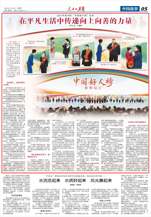 上榜好人中,有以残臂书写忠诚、用近千场宣讲传承红色基因的抗美援朝志愿军老兵周全弟;有在寒江中奋力托举救援、用生命完成人生“最后一单”的外卖员刘应强;有信守承诺38载、为村民健康护航的乡村医生叶永红;有用身体挡住高速行驶的汽车、为保护群众安全而英勇牺牲的交警郑亮;有照顾四代人三个家庭、用柔弱肩膀扛起生活重担的自媒体博主王皎等。他们是日常烟火里的温暖微光,在平凡生活中默默传递着向上向善的力量,展现了中华儿女昂扬奋发的精神气质。